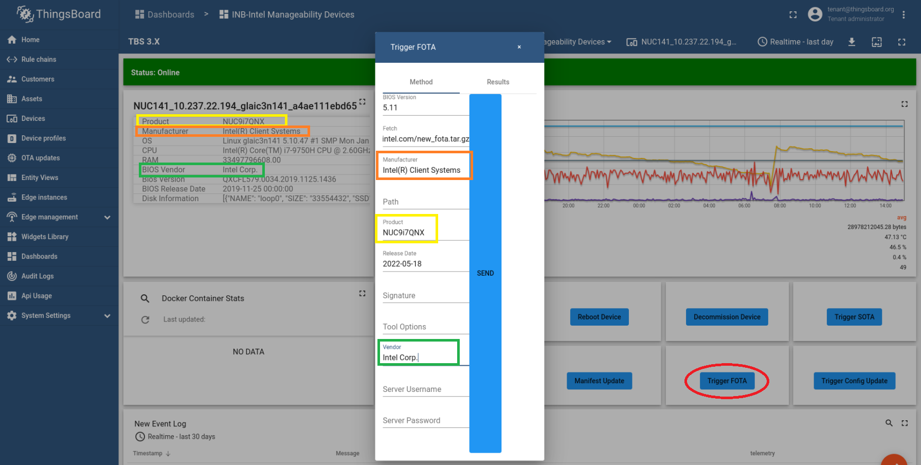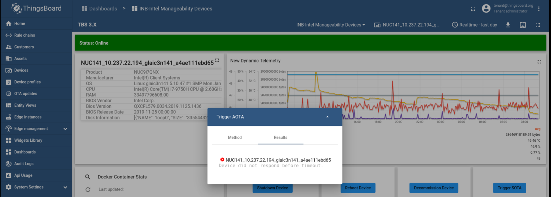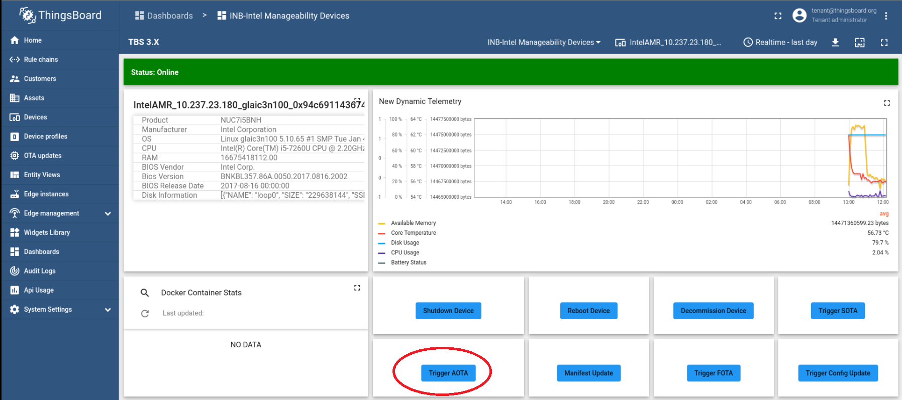 On the ThingsBoard* dashboard, click Trigger AOTA.