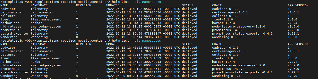 $ cat helm_wandering/Chart.yaml apiVersion: v2 appVersion: 1.0.0 description: A helm chart for wandering name: wandering type: application version: 0.1.0 root@glaic3edge02: $ cat helm_wandering_new/Chart.yaml apiVersion: v2 appVersion: 1.0.0 description: A helm chart for wandering name: wandering type: application version: 0.1.10