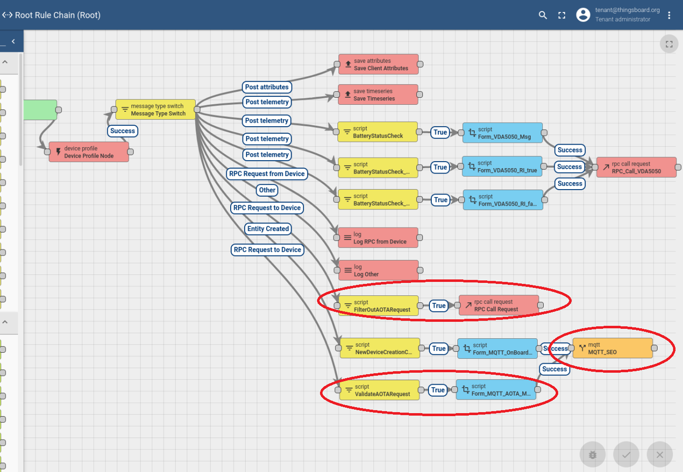Because the containers (or applications) are orchestrated and deployed by Intel® Smart Edge Open, the ThingsBoard* Rule Chain routes AOTA trigger requests to the Intel® Smart Edge Open server.