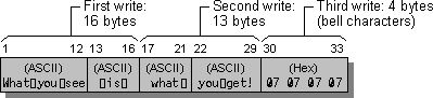 An example of a program writing three records to a formatted sequential file is given below. The resulting file is shown in the following figure.