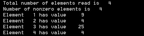 40 FORMAT(' Element', I4, 'Has value',I6)