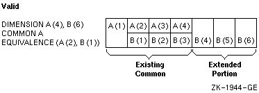 The following two figures demonstrate valid and invalid extensions of the common block, respectively.