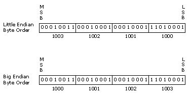 The following figure shows the difference between the two byte-ordering schemes for the case of storing an integer value: