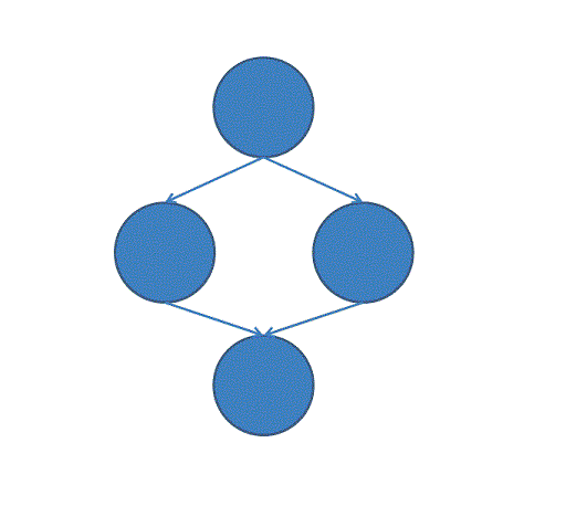 In the above example, the first task does not depend on any previous one. The second and third tasks depend on the first task but not on each other. The last task depends on the second and third tasks. The following shows the dependency graph: