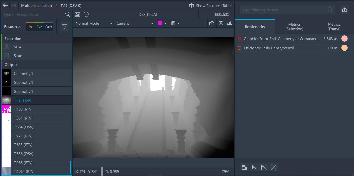 Use Intel® GPA Graphics Frame Analyzer to identify bottlenecks in the graphics pipeline. Capture a stream (a sequence of frames), focus on a particular frame, and explore API calls and graphics resources of this frame.
