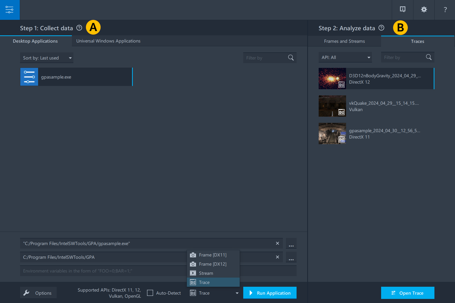 To learn more about trace analysis workflow, refer to the user guide section Identify Issues in Graphics Application Execution with Trace Analyzer.