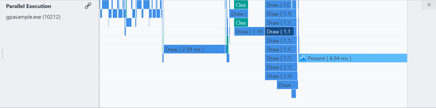 Parallel Execution track visualizes how the driver parallelizes execution of submitted render events.