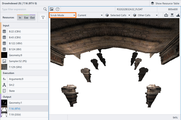 Selected Calls and Other Calls viewing options apply only to the draw calls that render into the selected render target.