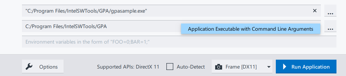 If you are new to Intel GPA, consider using samples available in the list of applications and click Run Application. This runs a sample application with Intel GPA instrumentation, enabling you to quickly analyze the performance. With this sample, you can verify the correct installation and operation of Intel GPA. This is especially useful if your application appears to have problems when running with Intel GPA.