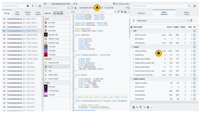 ) metrics to understand which shader was executed more times and needs optimization.