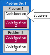Example 2 Suppress Problem 1 by creating a suppression rule based on Code Location 2. Code Location 2 is also part of Problem 2. Intel Inspector responds by marking anything that touches both Problem 1 and Problem 2: