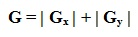 Sobel filter output G, as overall gradient magnitude, is generated through L1 and L2 normalization of Gx and Gy.