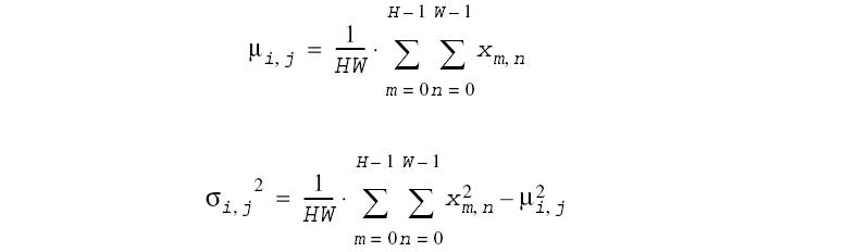 Here μi,j and σi,j stand for local mean and variance for pixel Xi,j, respectively, and H, W are the vertical and horizontal sizes of the mask, respectively.