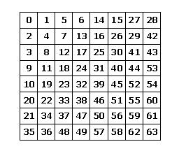 IppStatus ippiZigzagFwd8x8_16s_C1(const Ipp16s* pSrc, Ipp16s* pDst);