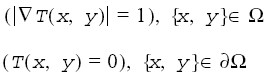 This function computes the distance from the closest zero pixel to each image pixel according to the Fast Marching Method (FMM) [ Telea04 ]. The FMM distance for area Ω with the border ∂Ω is a solution of the equations: