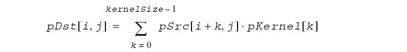 These functions apply the column filter of the separable convolution kernel to the source image pSrc. The filter coefficients are placed in the reversed order. For integer data: