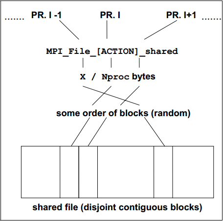 Concurrent access to a common file by all participating processes, with a shared file pointer. See the basic definitions and a schematic view of the pattern below.