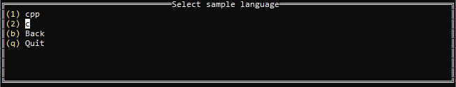 - Select the language for your sample. For your first project, select cpp, then press Enter.