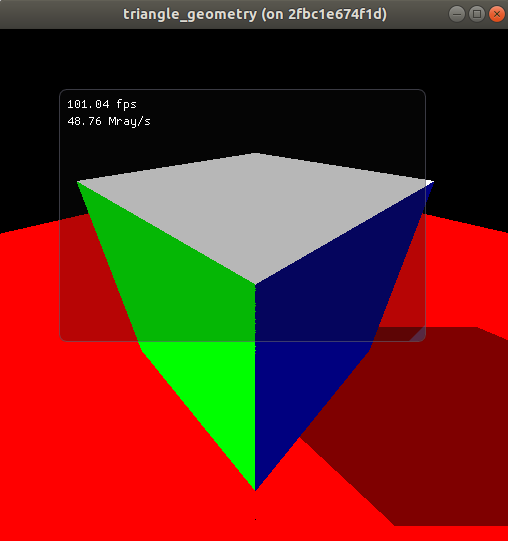 A new window will open with a 3D cube. For details about triangle_geometry, see Chapter 9 in the Intel Embree documentation.
