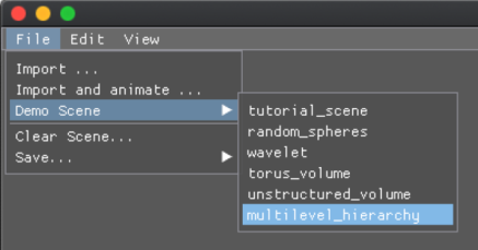 - In the rendering window, go to File > Demo Scene and select one of the predefined demo scenes.