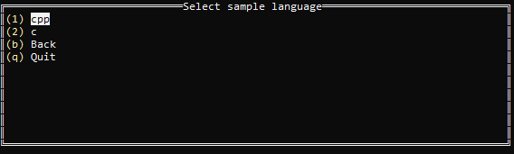 - Select the language for your sample. For your first project, select cpp, then press Enter.