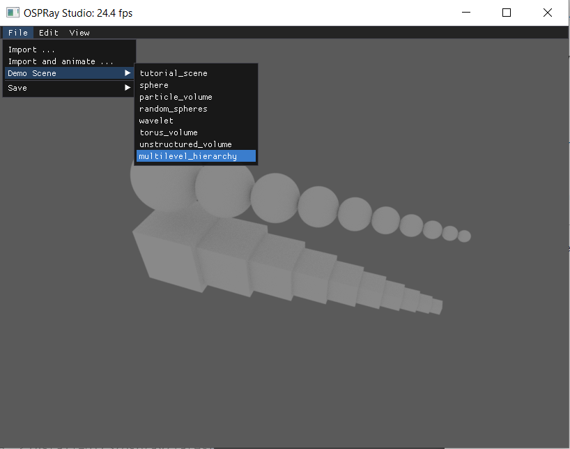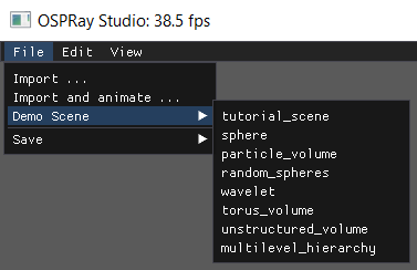 - In the rendering window, go to File > Demo Scene and select one of the predefined demo scenes.