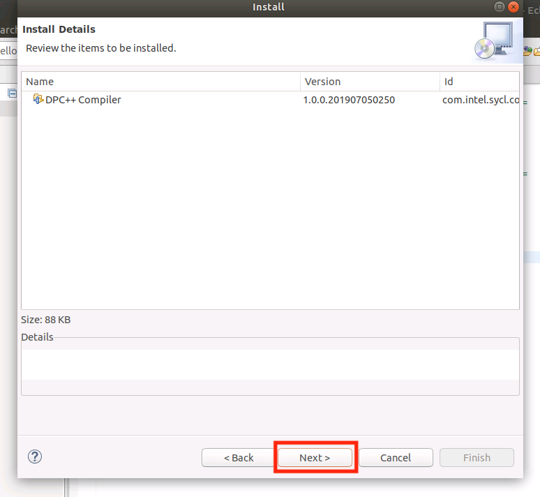 8. Confirm that the plugin to be installed is listed in the Install Details dialog box, and then click Next.