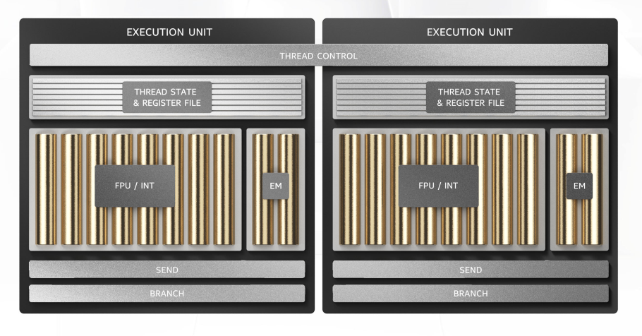 Unlike the Xe-LP and prior generations of Intel GPUs that used the Execution Unit (EU) as a compute unit, Xe-HPG and Xe-HPC use the Xe-core. This is similar to an Xe-LP dual subslice.
