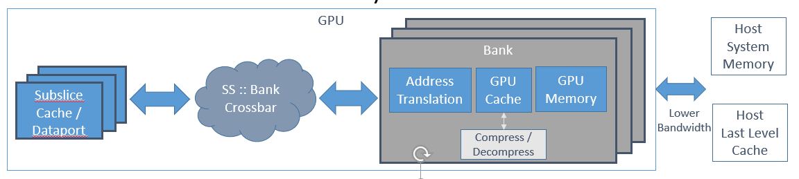 Compression unit compresses adjacent cache lines. Also supports read/write of fast-clear surfaces. Improves bandwidth but also adds latency.