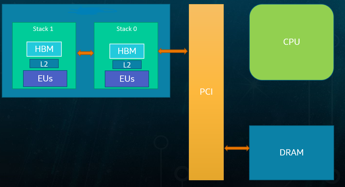 Intel® Data Center GPU Max Series use a multi-stack GPU architecture with 1 or 2 stacks.