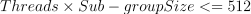 ). From this, we can derive that the maximum number of threads in a work-group is 64 (512 / 8).