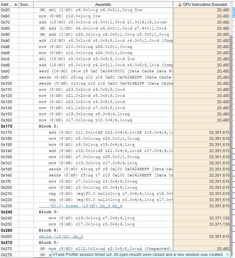 Compared to the assembly code for VectorDouble, there are 33 million more GPU instructions required when we execute our VectorDouble kernel.