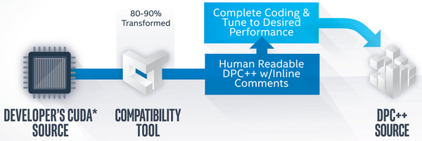 The Intel® DPC++ Compatibility Tool is part of the Intel® oneAPI Base Toolkit. The goal of this tool is to assist in the migration of an existing program that is written in NVIDIA* CUDA* to a program written in SYCL* and compiled with the Intel® oneAPI DPC++ Compiler. This tool generates SYCL code as much as it can. However, it will not migrate all code and manual changes may be required. The tool provides help with IDE plugins, a user guide, and embedded comments in the code to complete the migration to be compiled with DPC++. After completing any manual changes, use a oneAPI DPC++ Compiler to create executables.