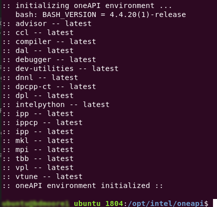 advisor=latest ccl=latest compiler=latest dal=latest debugger=latest dev-utilities=latest dnnl=latest dpcpp-ct=latest dpl=latest ipp=latest ippcp=latest mkl=latest mpi=latest tbb=latest vtune=latest