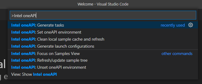 Type Intel oneAPI and select Intel oneAPI: Generate tasks.