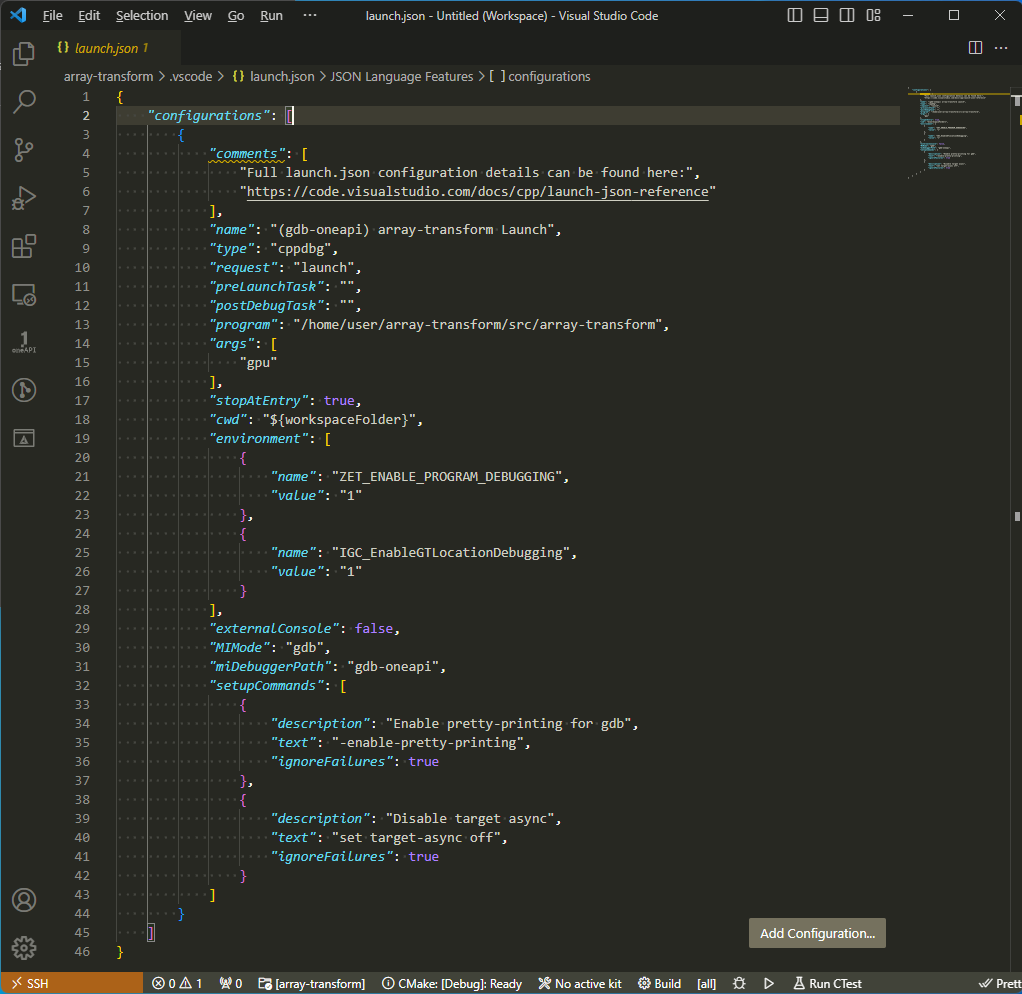 For information about launch.json features, see Configuring C/C++ debugging