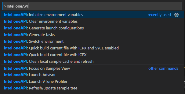 All tasks, launches, and terminals created from VS Code will now contain the oneAPI environment. If you make a new connection such as ssh, repeat the steps above to configure the environment again.