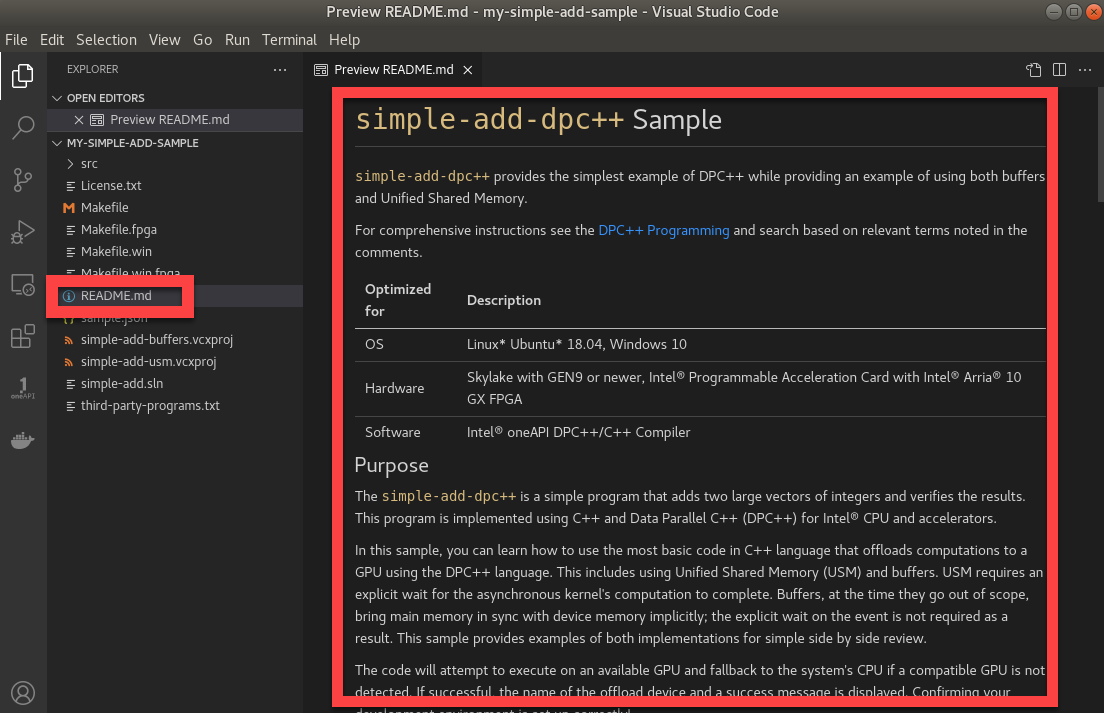Before working with oneAPI samples, it is recommended that you install the VS Code “Code Sample Browser for Intel® Software Development Tools” extension and the VS Code “Environment Configurator for Intel® Software Development Tools” extension.