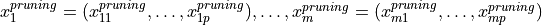 Pruned dataset can be some fraction of original training dataset (e.g. randomly chosen 30% of observations), but in this case those observations must be excluded from the training dataset.