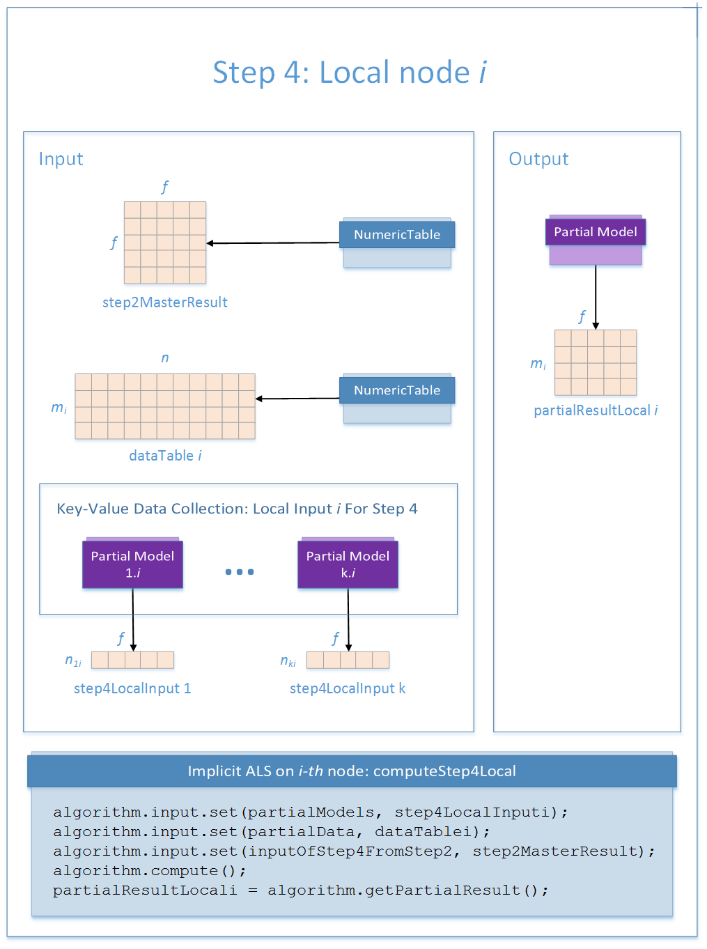A key-value data collection with partial models that contain user factors/item factors computed in Step 3. Each element of the collection contains an object of the PartialModel class. |
