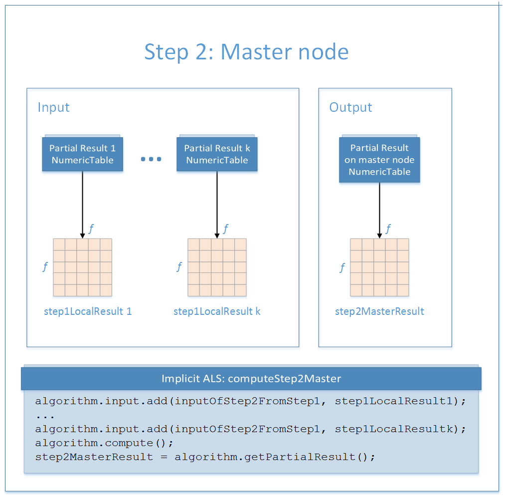 . The main loop of the implicit ALS training stage is executed on the master node.
