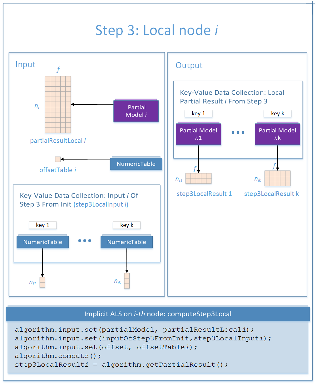 On each node i, this step uses results of the previous steps and requires that you provide two extra matrices Offset Table i and Input of Step 3 From Init i computed at the initialization stage of the algorithm.