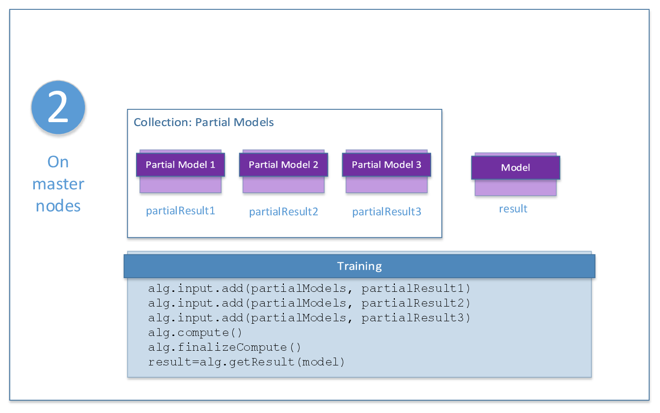 Use the two-step computation schema for linear and ridge regression training in the distributed processing mode, as illustrated below: