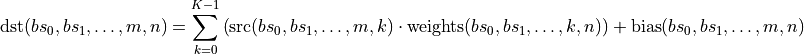 by broadcasting. In other words, for every dimension, the following constraint must hold true: dimension(bias) == dimension(dst) || dimension(bias) == 1.