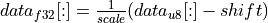 Data (hidden states) use scale = 127, and shift = 128.