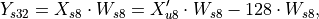 int8_t a_s8[4] = {127, 127, 0, 0}; int8_t b_s8[4] = {127, 127, 0, 0}; int32_t c_s32 = 0; // s8s8 the uses u8s8 auto s8s8s32_compute = [](int8_t a_s8[4], int8_t b_s8[4], int32_t c_s32) { uint8_t a_u8[4] = { 128 + a_s8[0], ...}; c_s32 = u8s8s32_compute(a_u8, b_s8, c_s32); // apply the compensation c_s32 += - 128 * b_s8[0] - 128 * b_s8[1] - 128 * b_s8[2] - 128 * b_s8[3]; return c_s32; }; c_s32 = s8s8s32_compute(a_s8, b_s8, c_s32); // c_s32 = 255 // = 32767 - 128 * (127 + 127 + 0 + 0); // While one might expect 32258 !!!