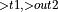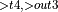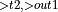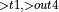 refers to the pattern started with A followed by B and C, and C takes an implicit input tensor from B and an extra tensor t1 output from A. ">" refers to the output tensor, and "<" for input tensor. Input and output tensor between neighbor ops are not explicitly marked, for example, B consumes t1 implicitly in the example above.