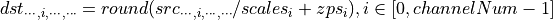 For per-channel quantization, taking channel axis = 1 as an example: