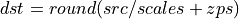 DynamicQuantize operation converts a f32 tensor to a quantized (s8 or u8) tensor. It supports both per-tensor and per-channel asymmetric linear quantization. The target quantized data type is specified via the data type of dst logical tensor. Rounding mode is library-implementation defined.