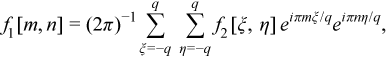 where f(m/q, n/q) ≈f1[m, n] for m = -q : q and n = -q : q.